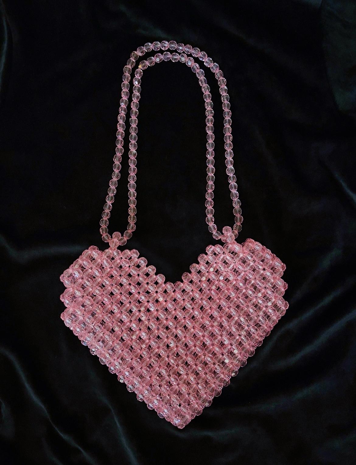 Product DescriptionThis handmade beaded shoulder bag features a transparent pink heart-shaped design for a sweet, romantic, and eye-catching look. Glossy and feminine, it is perfect for parties, dates, weddings, vacations, and charming everyday styling. DetailsBag Size: Approx. 8.7 x 7.9 in / 22 x 20 cmHandle Drop: Approx. 8.3 in / 21 cmMaterial: Beaded construction Selling PointsHeart-shaped silhouette with a lovely statement lookTransparent pink beads create a glossy finishHandmade design with a delicate feminine feelGreat for parties, outings, and cute daily outfits
